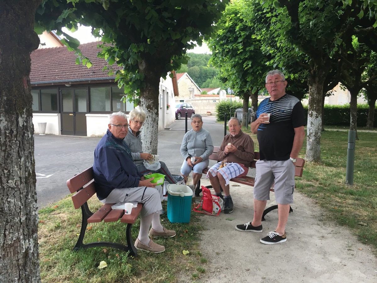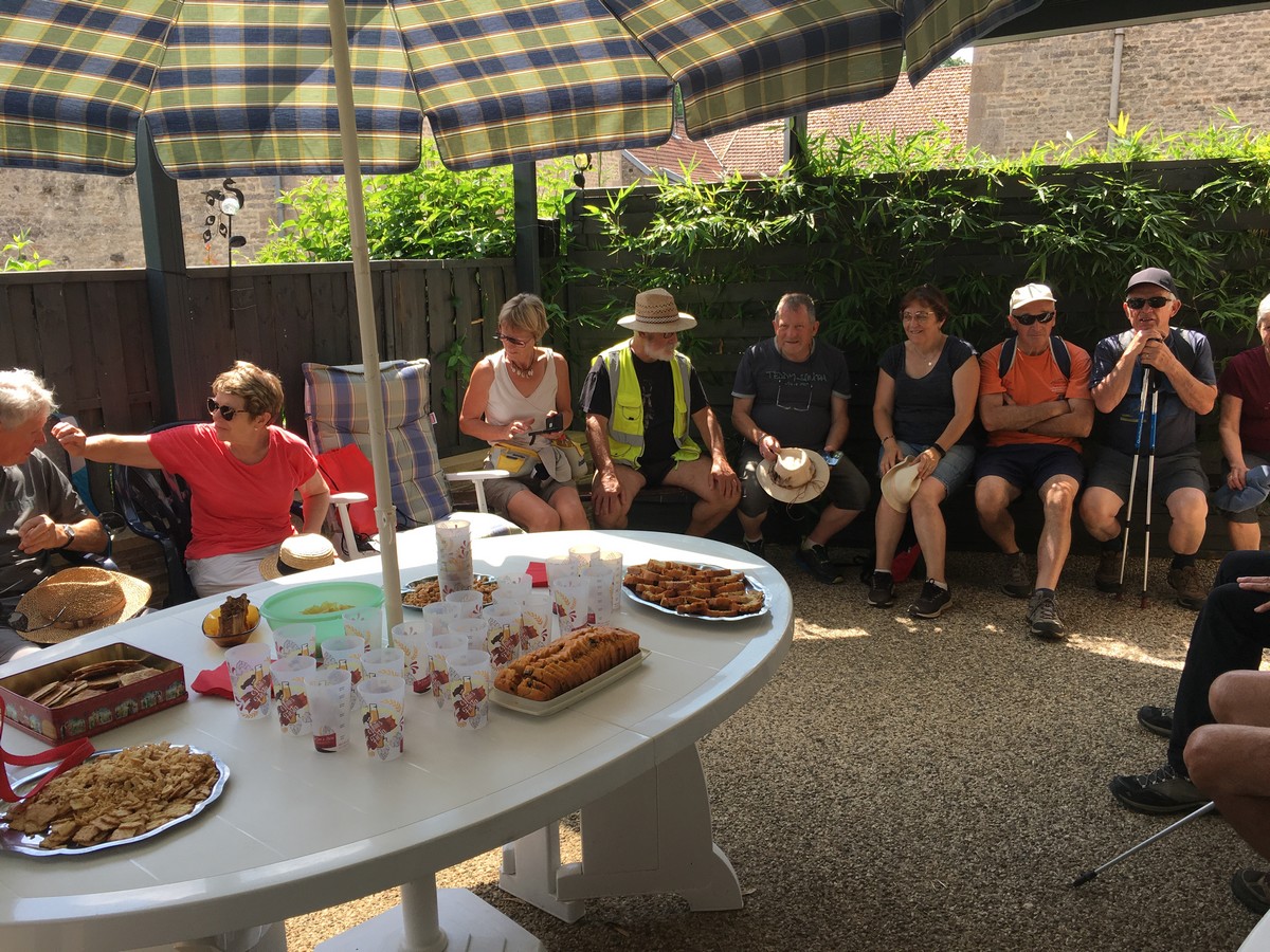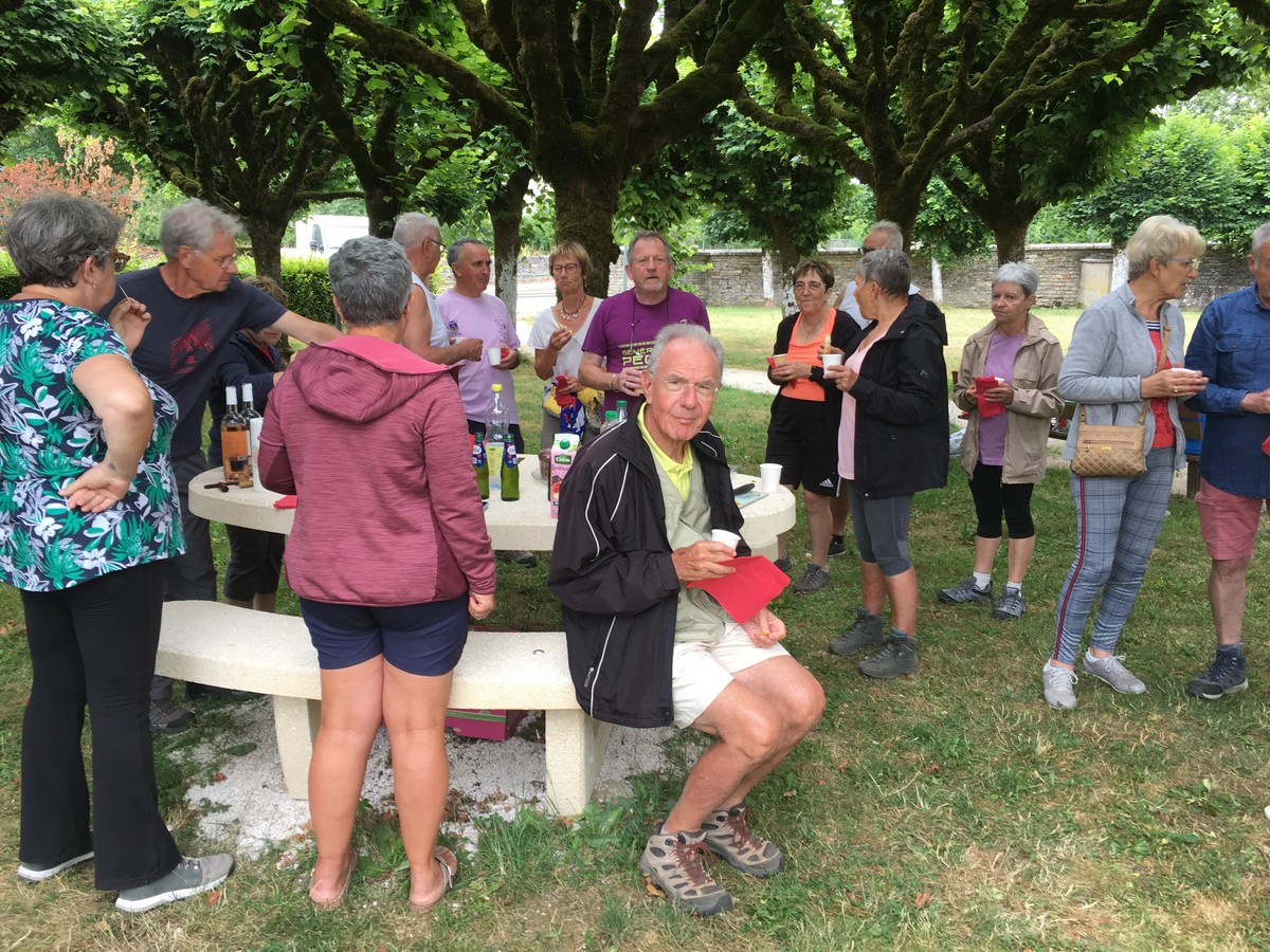 Ce vendredi, c’est à Giey-sur-Aujon que les marcheurs avaient rendez-vous pour un parcours de 10kms. Le départ était donné sur la jolie place de ce petit village pour suivre un circuit qui nous a conduit entre forêts et champs de blé doré. Niveau météo, pas de chaleur écrasante mais pas de pluie non plus contrairement à ce qui était annoncé. Cette randonnée étant la dernière de la saison, Jean-Luc responsable marche du vendredi, nous avait préparé une petite collation apéritive que nous avons prolongé par un pique-nique tiré du sac… une façon bien sympathique de se souhaiter bonnes vacances en attendant de se retrouver en septembre. Merci à Mme le maire pour la visite de sa mairie et ses explications sur la porcelaine de Giey.
